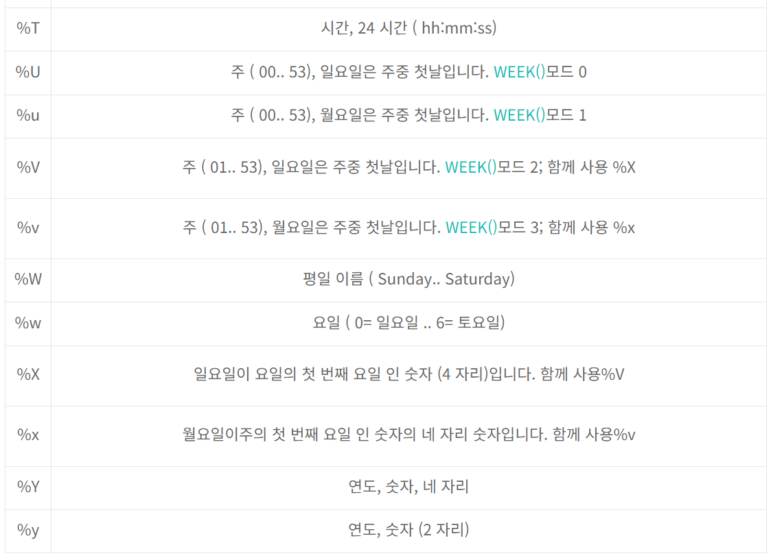 - DATE_FORMAT(): 날짜와 시간 형식을 변환합니다.