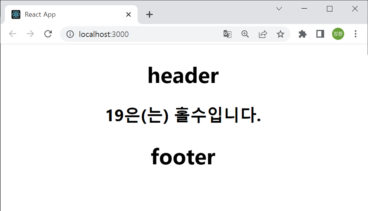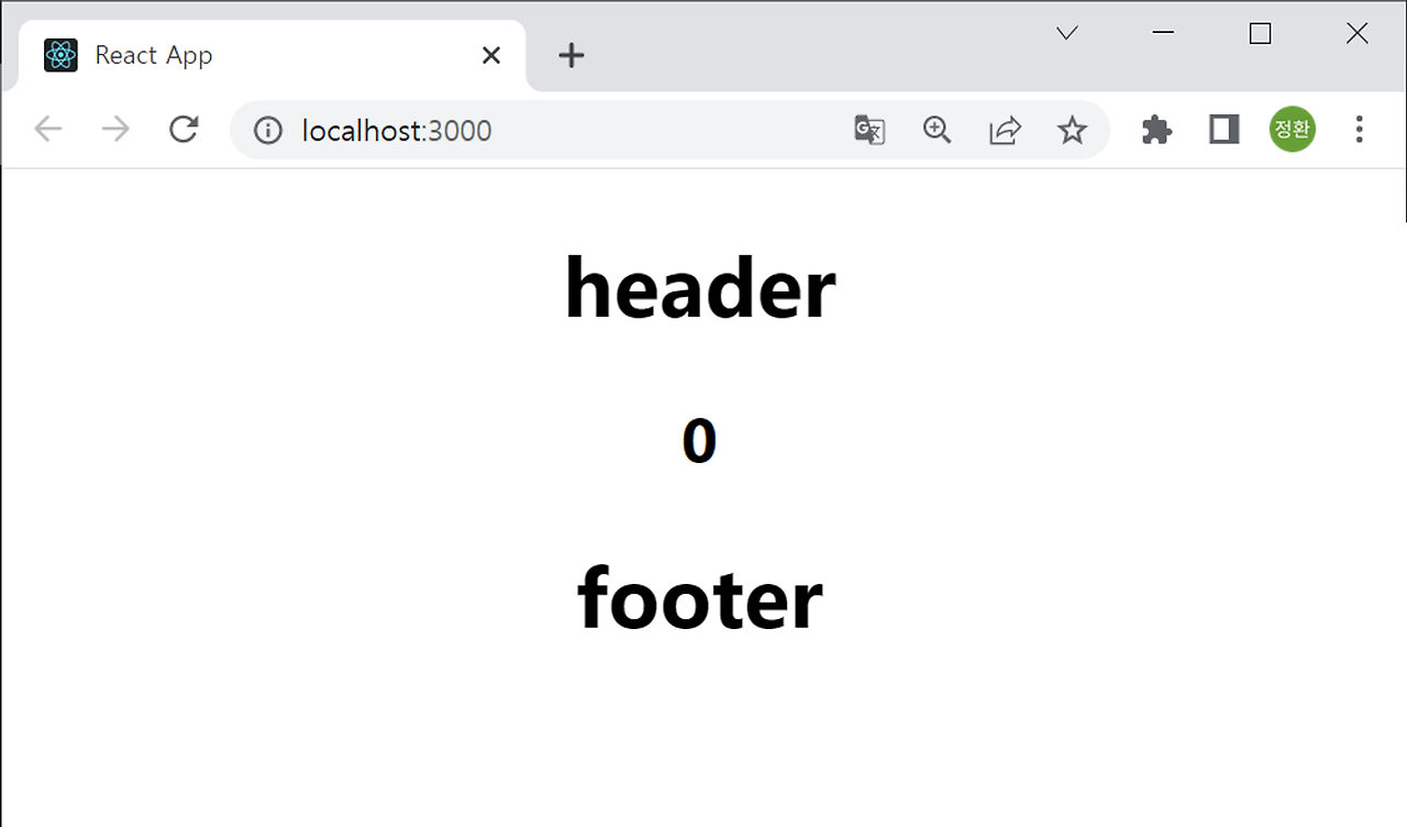 Header 컴포넌트를 페이지에 렌더링하려면 App 컴포넌트에서 자식 요소로 배치해야 한다.