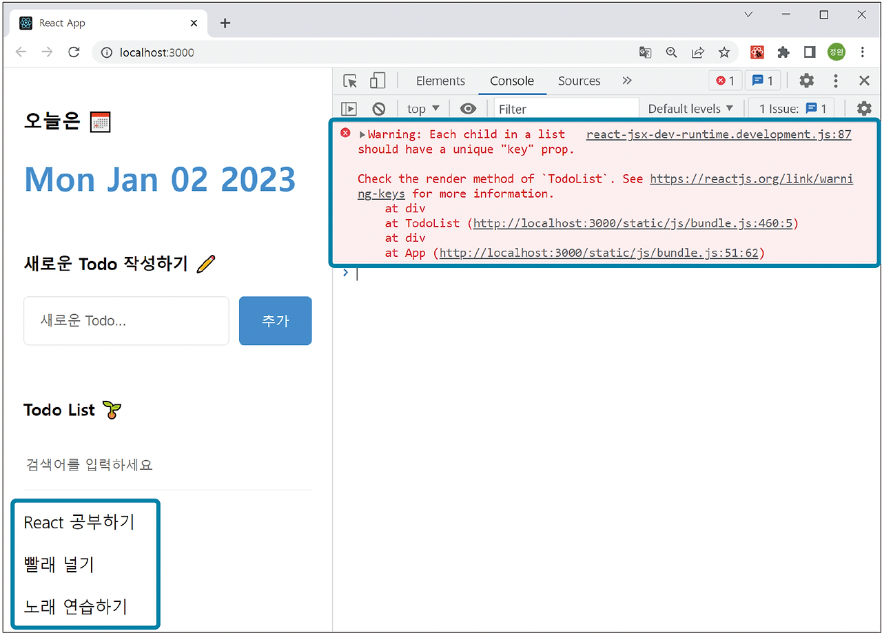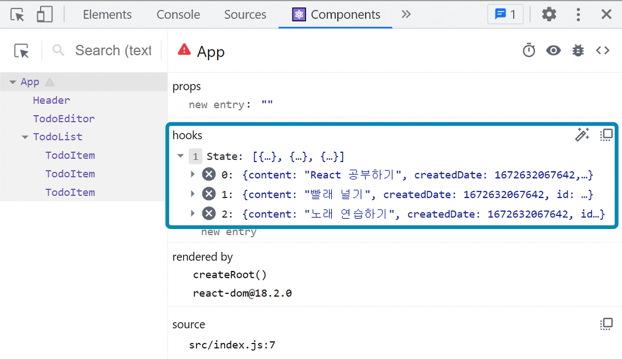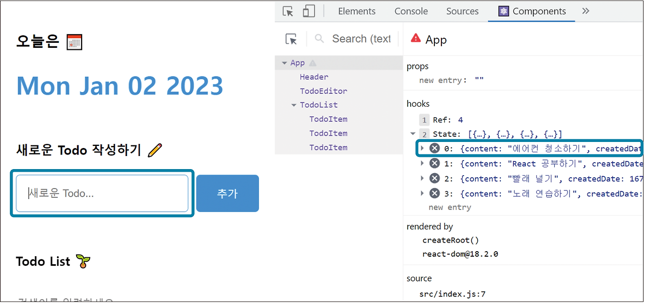 - TodoList 컴포넌트는 Props의 값이 변경되면 리렌더링한다.
