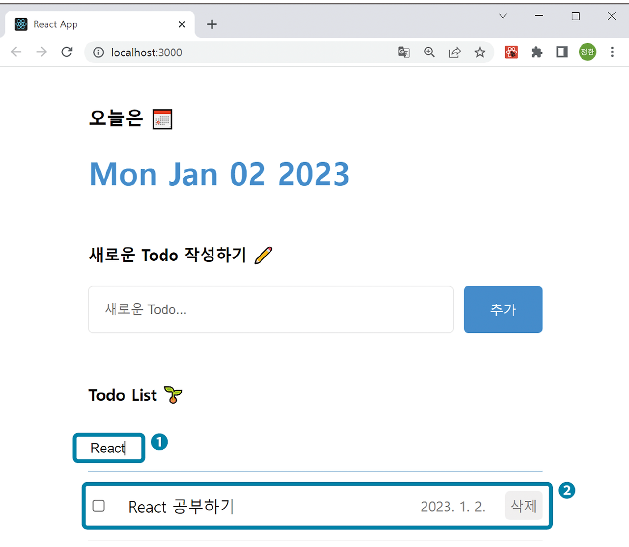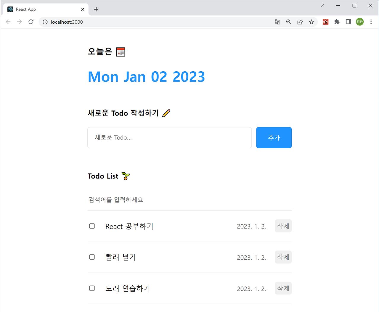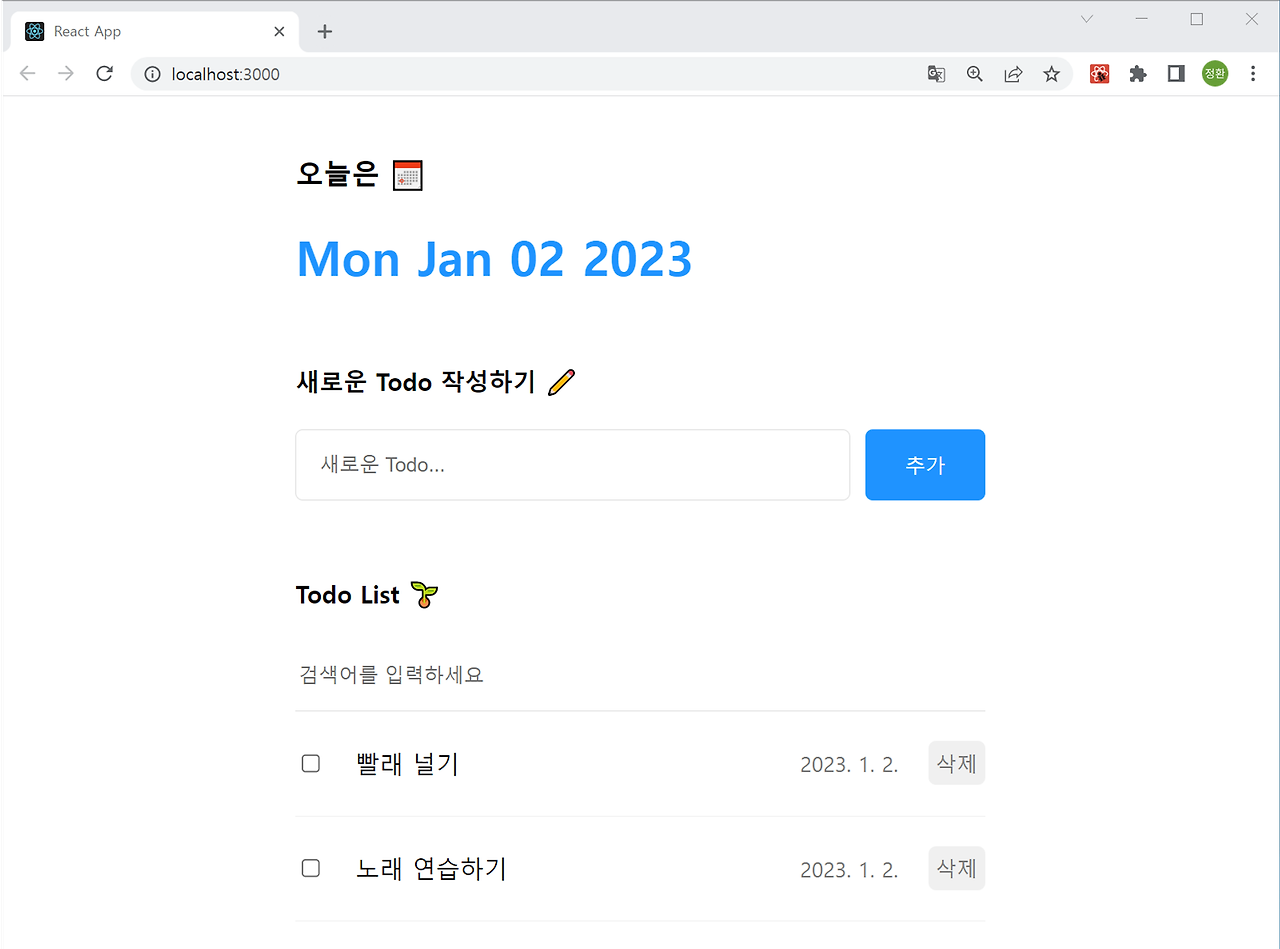 - TodoList: 검색어에 맞게 필터링된 할 일 리스트를 렌더링합니다.