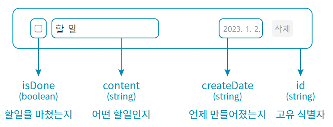 - 할 일 아이템 체크박스, 등록 날짜, 삭제 버튼