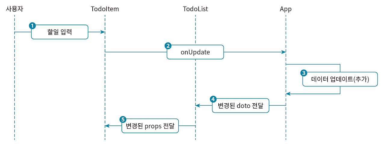 - onUpdate는 할 일의 상태를 업데이트하는 함수로, TodoItem 컴포넌트에서 호출할 수 있도록 전달된다.