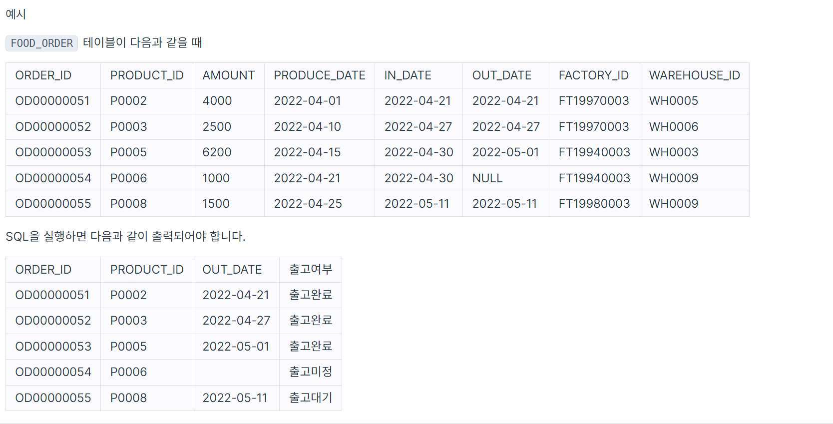 WHEN OUT_DATE <= '2022-05-01' THEN '출고완료'
