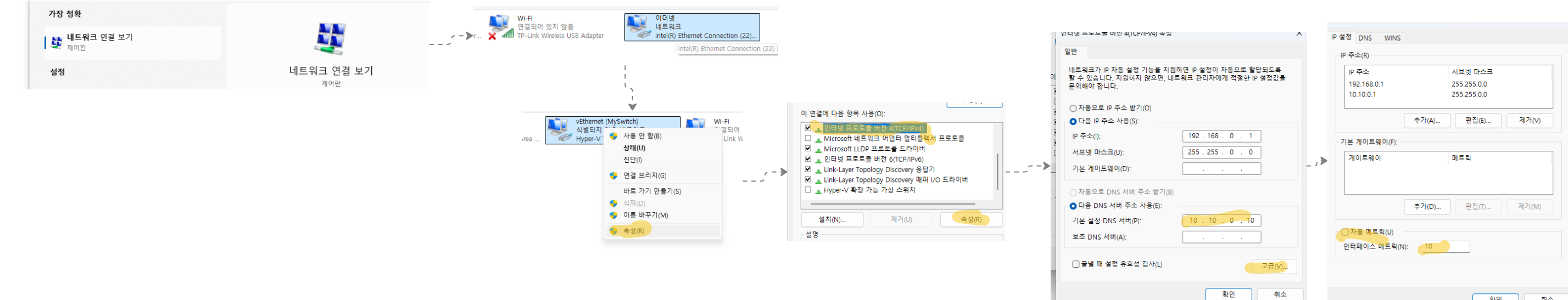 Windows 환경에서 Hyper-V 네트워크 스위치를 설정하는 방법입니다.