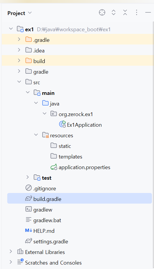 스프링 부트 프로젝트의 폴더 구조는 다음과 같다.