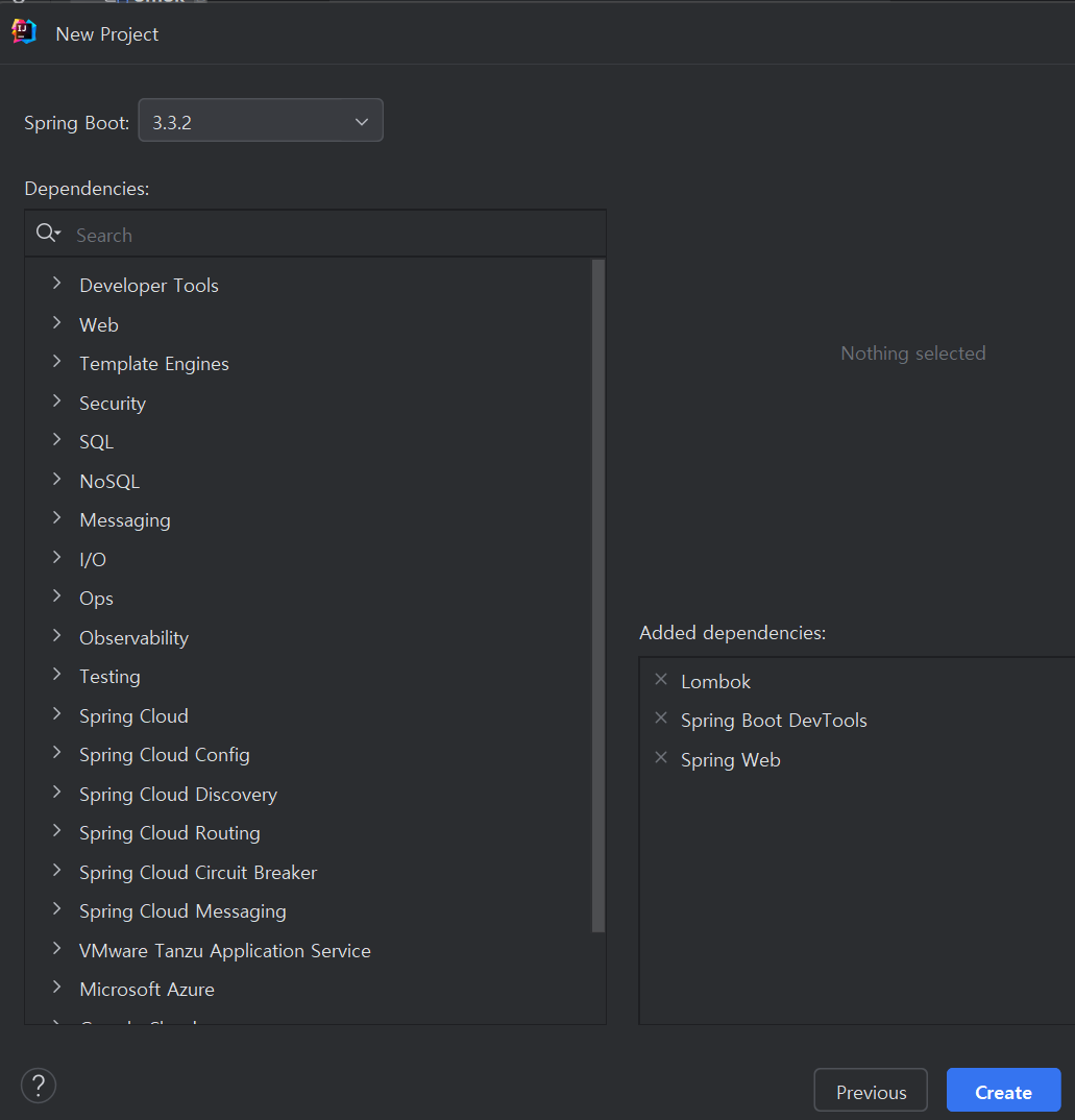 프로젝트를 생성할 때 필요한 의존성을 선택하면, 자동으로 필요한 라이브러리들이 추가되었다.