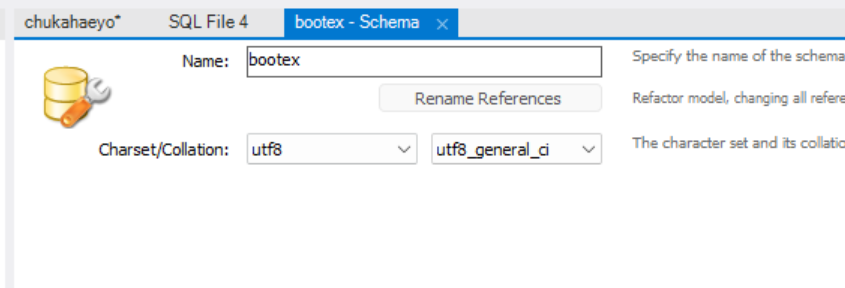 스키마 이름은 bootex로 지정했다.