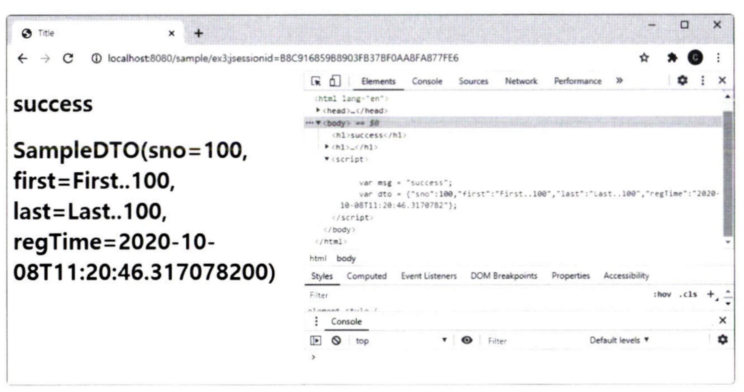 SampleController에서 SampleDTO 객체를 Model에 추가하여 전달한다.