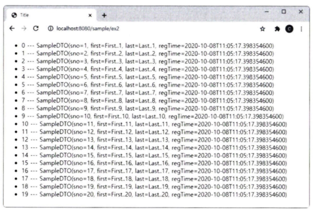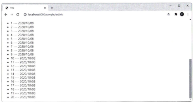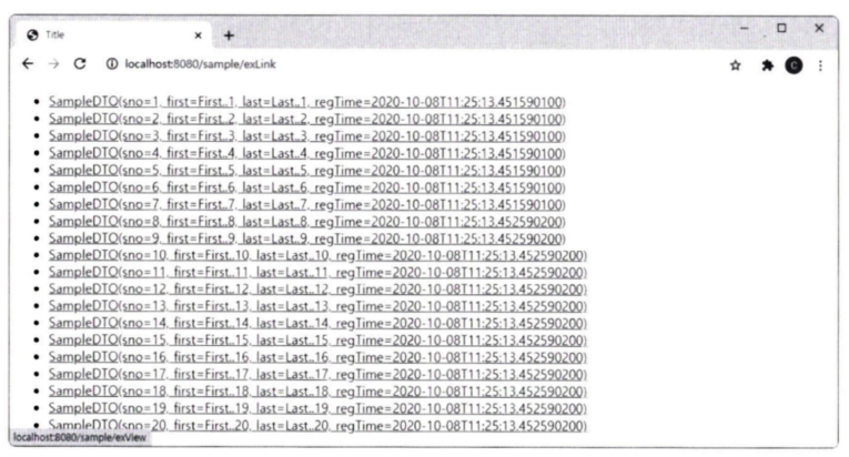 브라우저에서 /sample/exTemplate URL을 확인하면 다음과 같이 처리됩니다: