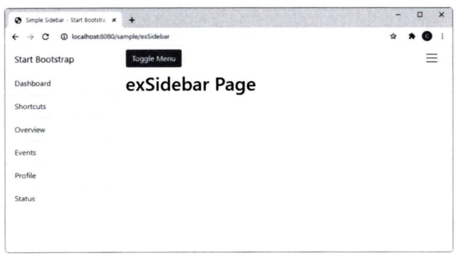 브라우저에서 /sample/exSidebar URL을 확인하면, 레이아웃이 유지된 상태에서 exSidebar.html의 내용이 출력됩니다.