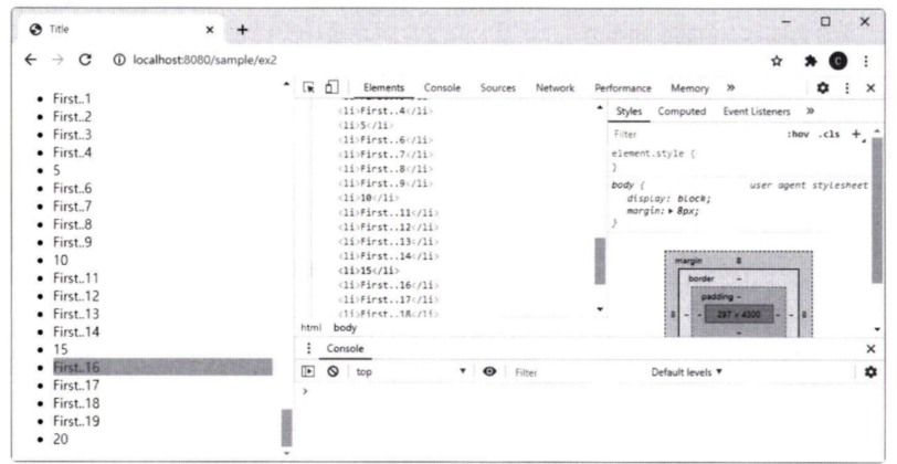 브라우저에서 확인하면 다음과 같은 모습으로 출력됩니다: