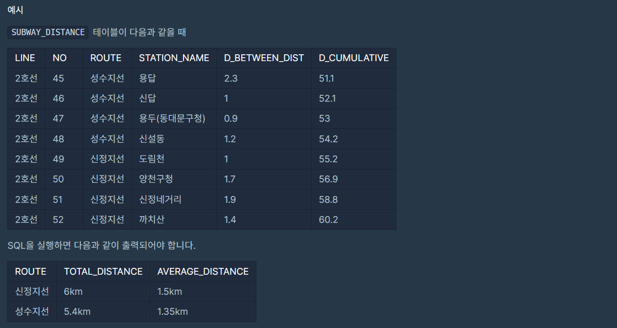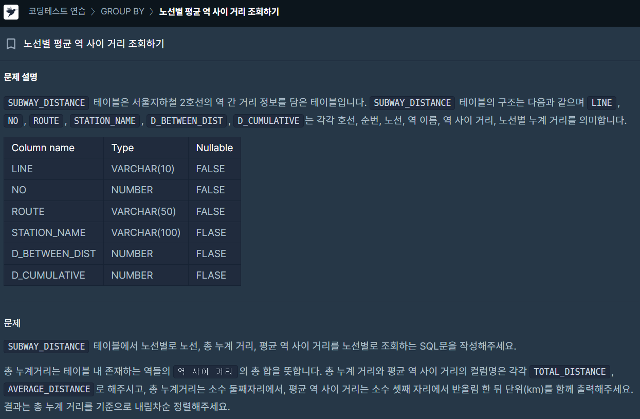 [프로그래머스 코딩테스트 연습 SQL - 13] 노선별 평균 역 사이 거리 조회하기 (MySQL) 본문