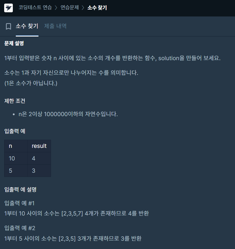 이 문제의 목표는 1부터 입력받은 숫자 n 사이에 있는 소수의 개수를 구하는 것이다.