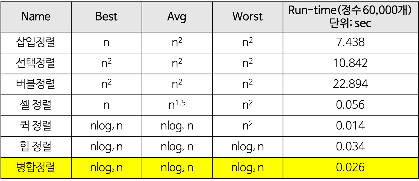 - 안정적인 정렬 방법. 데이터의 분포에 영향을 덜 받는다. 즉, 입력 데이터가 무엇이든 간에 정렬되는 시간은 동일하다. (O(nlog₂n)로 동일)