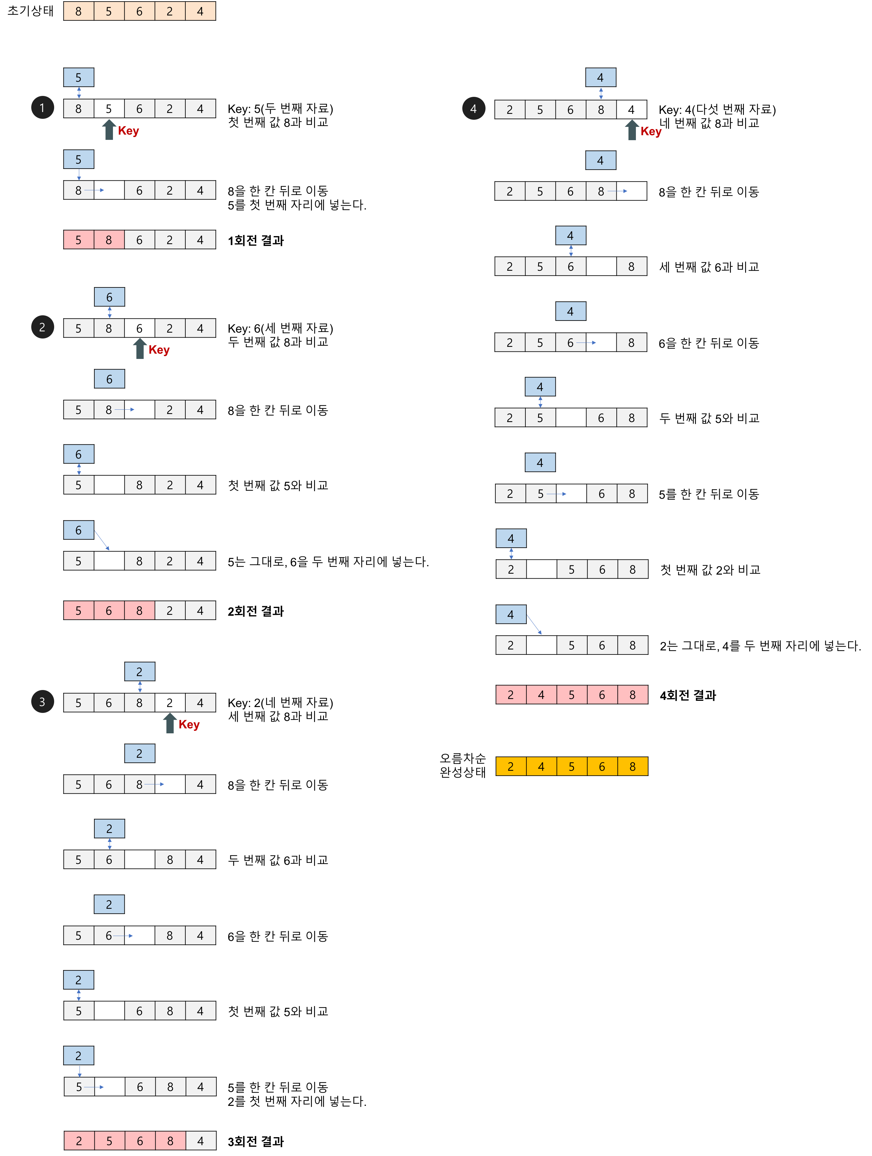 동일한 배열을 삽입 정렬로 정리해보자.