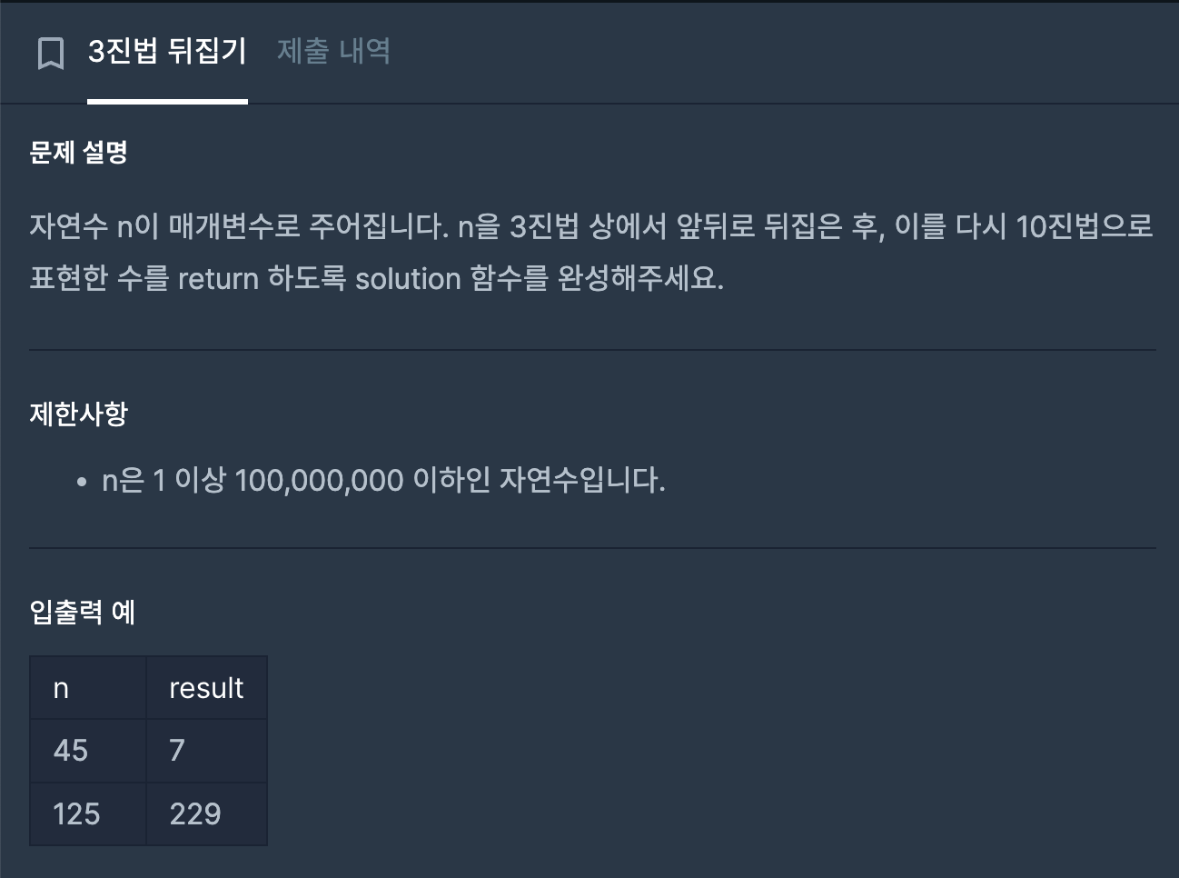 [프로그래머스 코딩테스트 연습] 3진법 뒤집기 (Python3) 본문