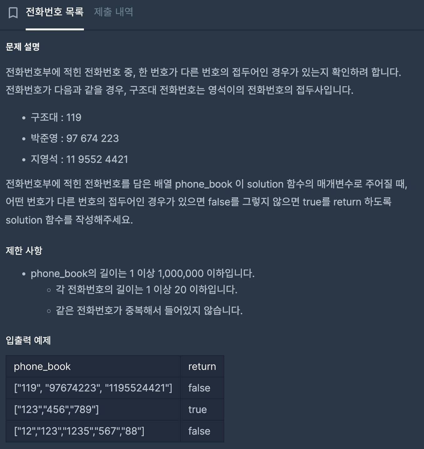 [프로그래머스 코딩테스트 연습] 전화번호 목록 (Python3) 본문