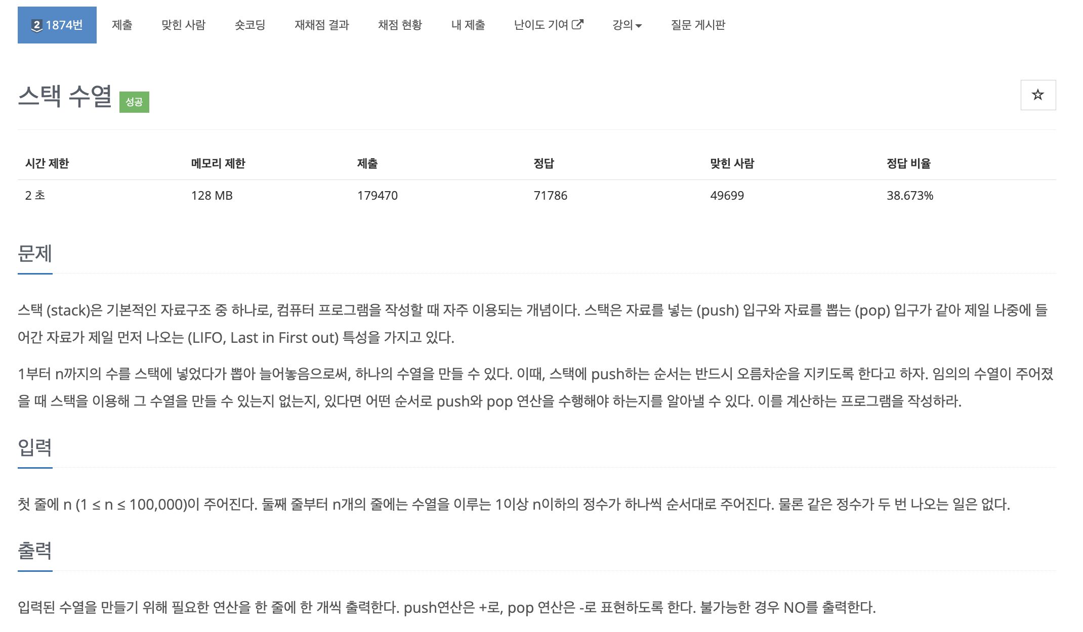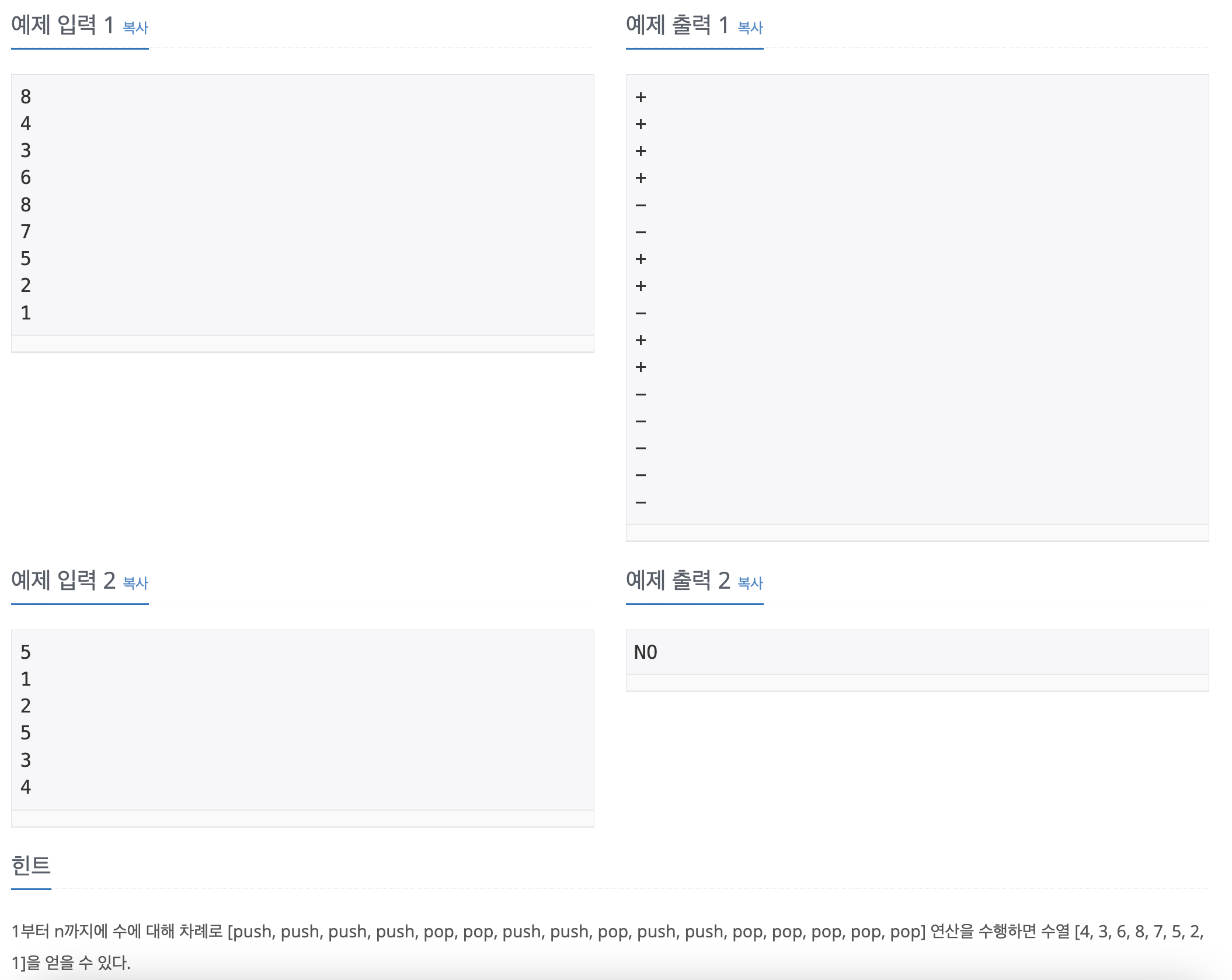 https://www.acmicpc.net/problem/1874