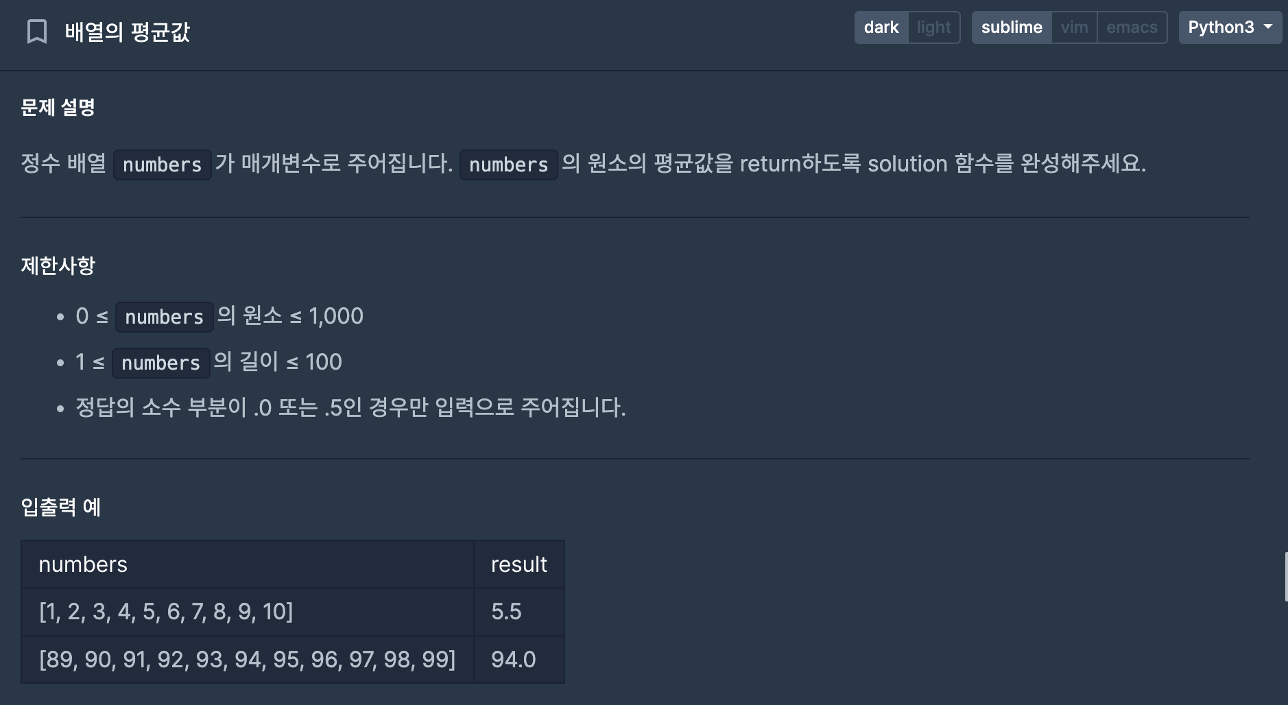 1. 배열의 평균값
