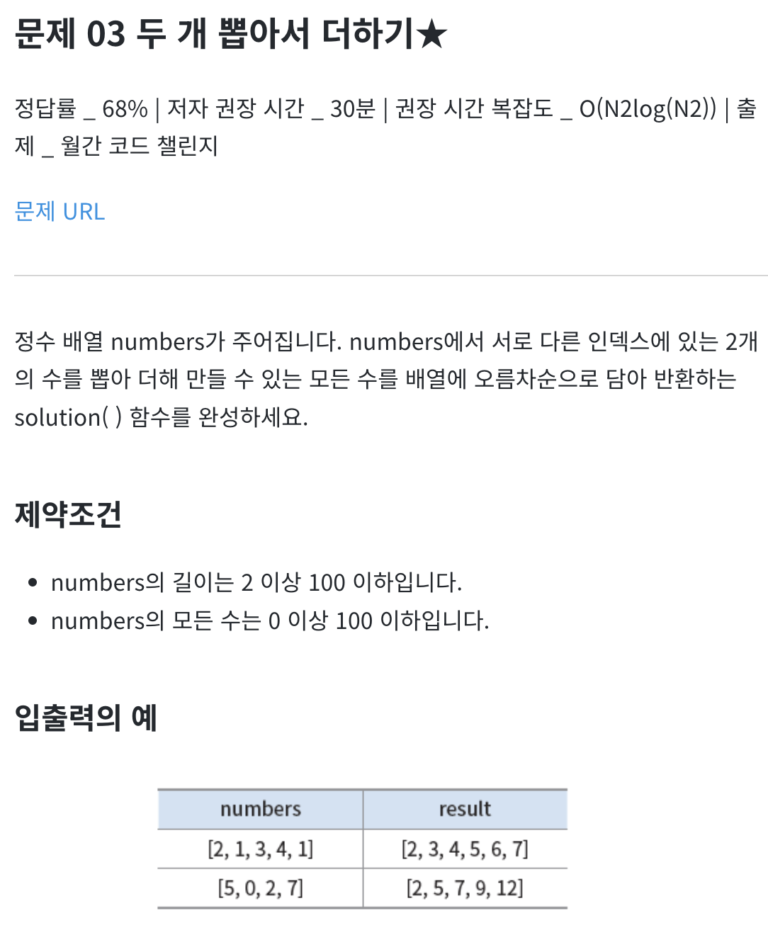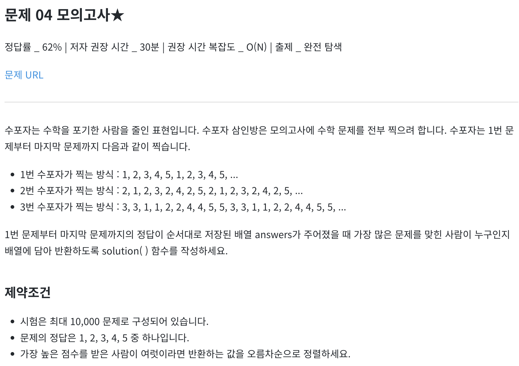 추천 문제 (프로그래머스)