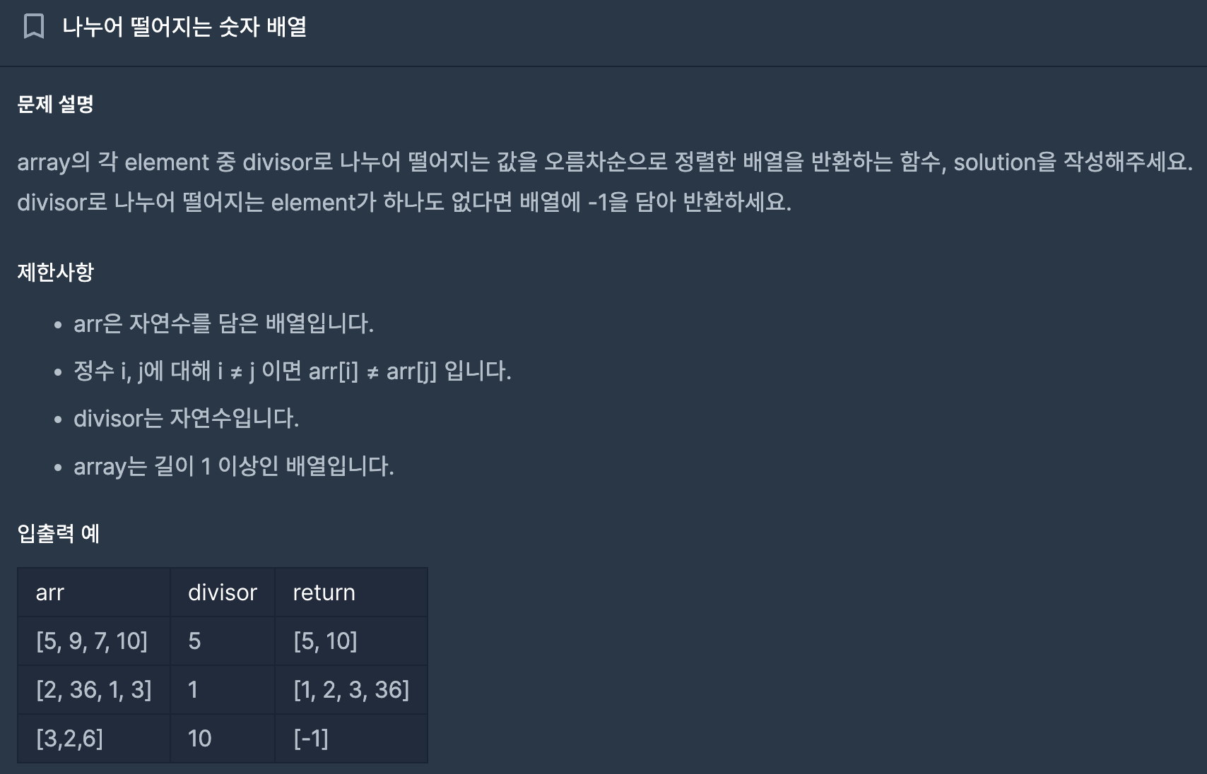 4. 나누어 떨어지는 숫자 배열