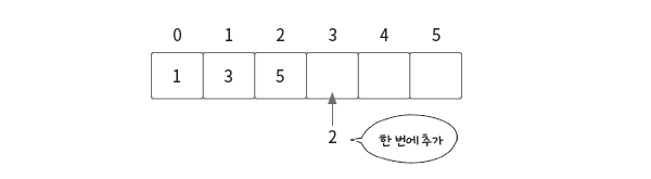 맨 뒤에 삽입할 때는 임의 접근을 바로 할 수 있으며, 데이터를 삽입해도 다른 데이터 위치에 영향을 주지 않습니다.