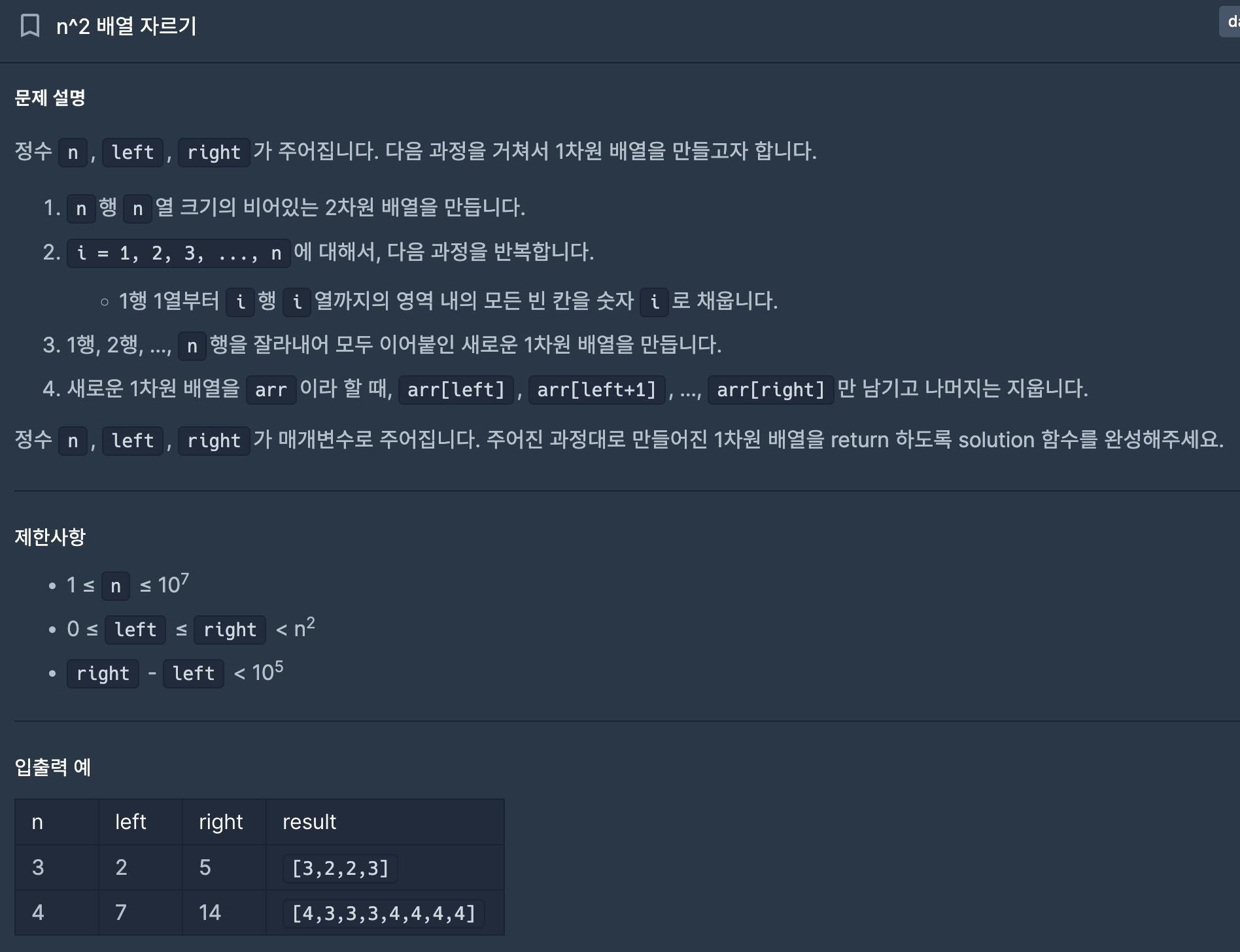 3. n^2 배열 자르기
