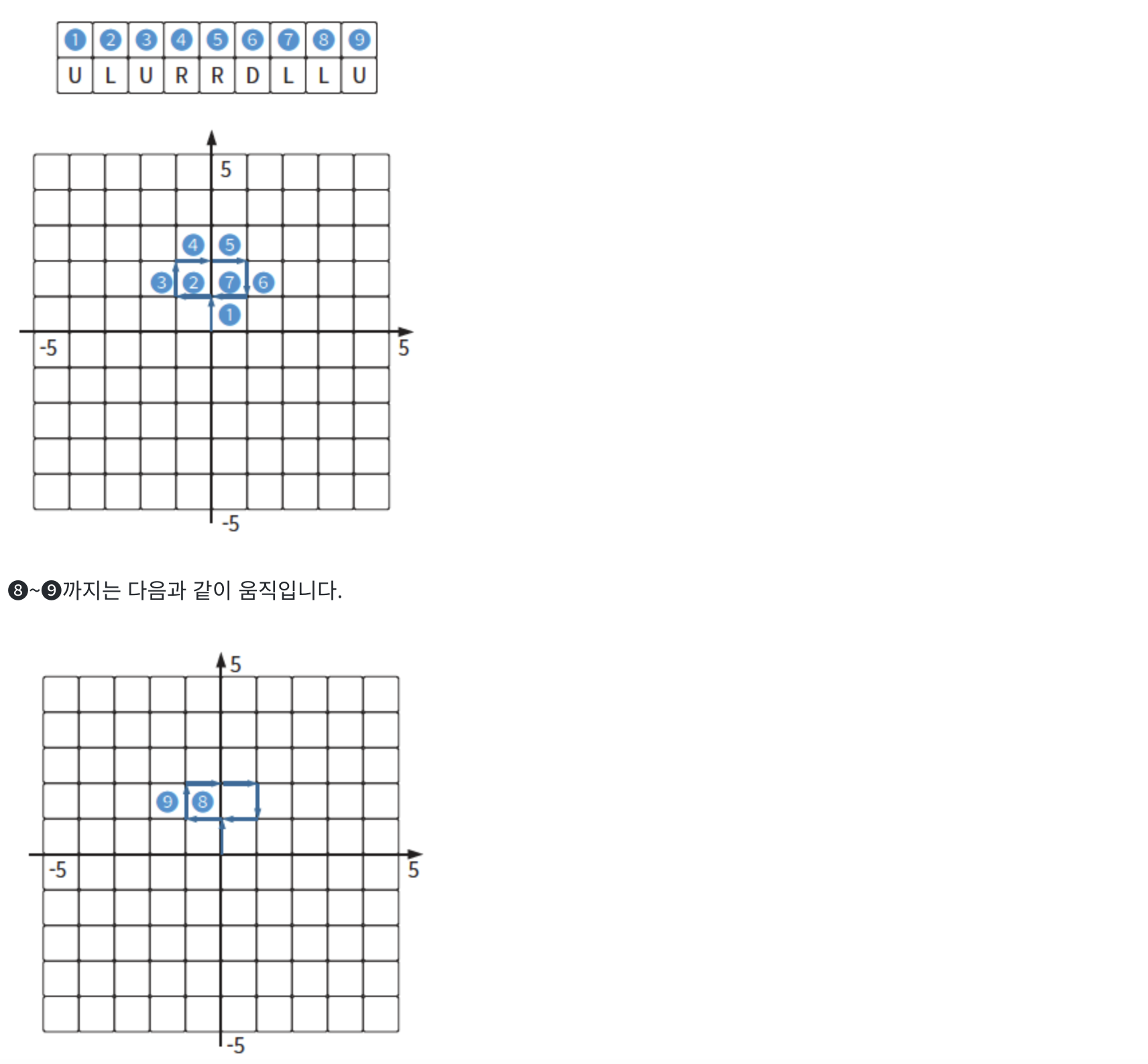 for dir in dirs : # ➍ 주어진 명령어로 움직이면서 좌표 저장