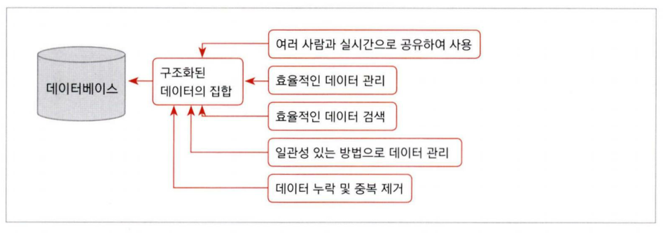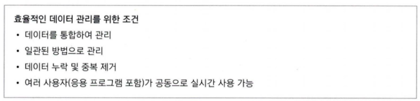 특정 목적을 위해 여러 사람이 공유하여 사용할 수 있으며, 효율적인 관리와 검색을 위해 구조화한 데이터 집합을 DB라고 한다.