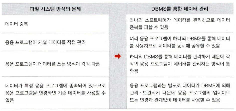 각 파일 시스템으로 데이터를 관리하면 데이터가 흩어져 문제가 발생할 수 있음.
