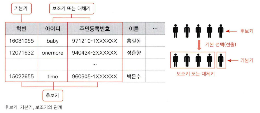 후보키는 엄밀하게는 기본 키가 될 수 있는 모든 키를 의미한다. 즉, 기본키도 후보키에 속한다.