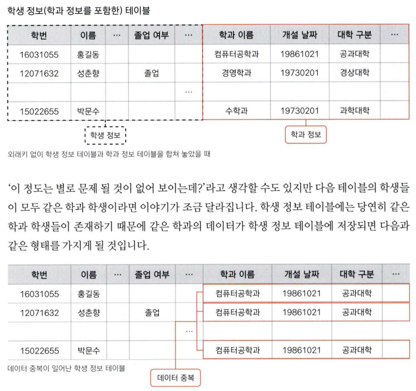 데이터 중복에 따른 처리비용이 증가하고, 저장 공간 크기와 관리는 비용과 관련이 있기에 최대한 데이터 중복을 피해야 한다.