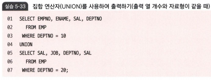 UNION은 위아래로 합쳐진다. (두 개 이상의 SELECT문 결과 결합)