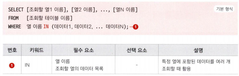 OR로도 쓸 수 있지만, IN 연산자로 조건을 여러개 지정할 수 있다.