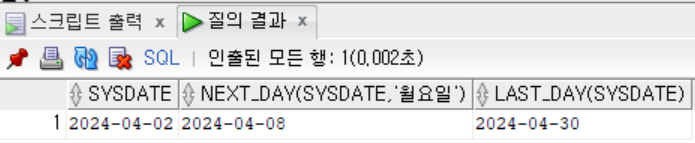 데이터가 한 행씩 입력되고, 한 행당 결과가 나오는 함수를 단일행 함수