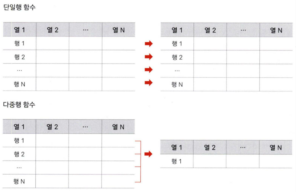 여러 행이 입력되어 하나의 행으로 결과가 반환되는 함수를 다중행 함수라고 한다.