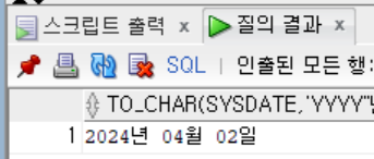 select to_char(sysdate,'YYYY"년" MM"월" DD"일"') from dual;