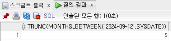 두 날짜 간의 개월 수 차이를 구하는 MONTHS_BETWEEN 함수