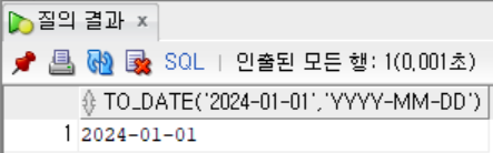 select to_date('2024-01-01', 'YYYY-MM-DD') from dual;