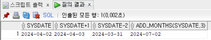 -- 오늘 일자, 내일, 엊그제, 3개월 후