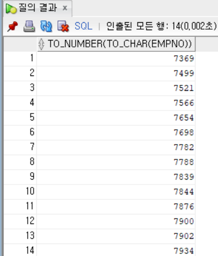 select to_number(to_char(empno)) from emp;