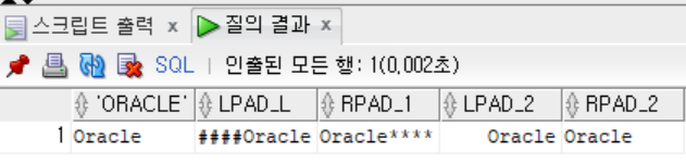 LPAD('Oracle', 10, '#') AS LPAD_l,