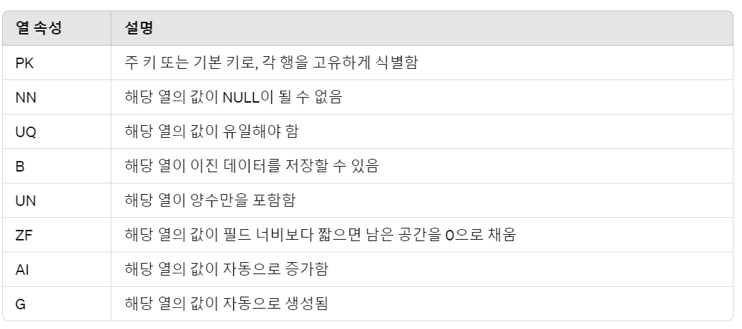 주로 기본 키(primary key)에 사용되며, 각 새로운 행이 추가될 때마다 이 값이 자동으로 증가합니다. - G (Generated):