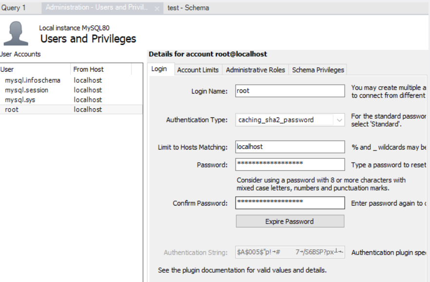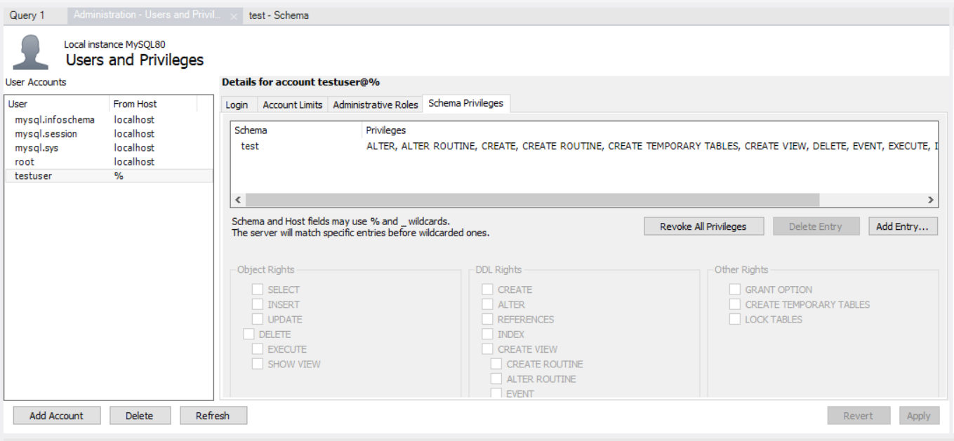 Users and Privileges에 사용자 계정이 있다.